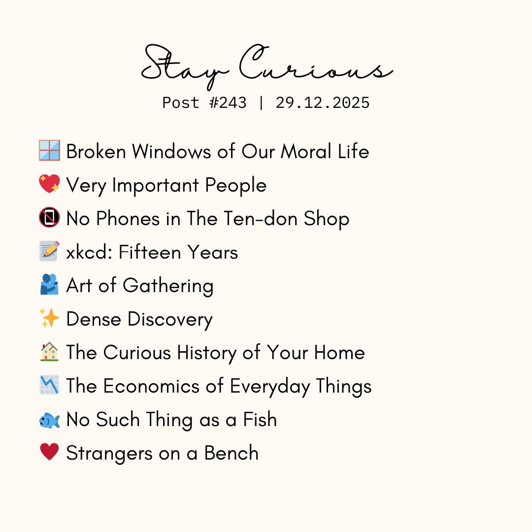 📚 #243 Broken Windows, Very Important People, Shops with Rules, Fifteen Years, Art of Gathering
