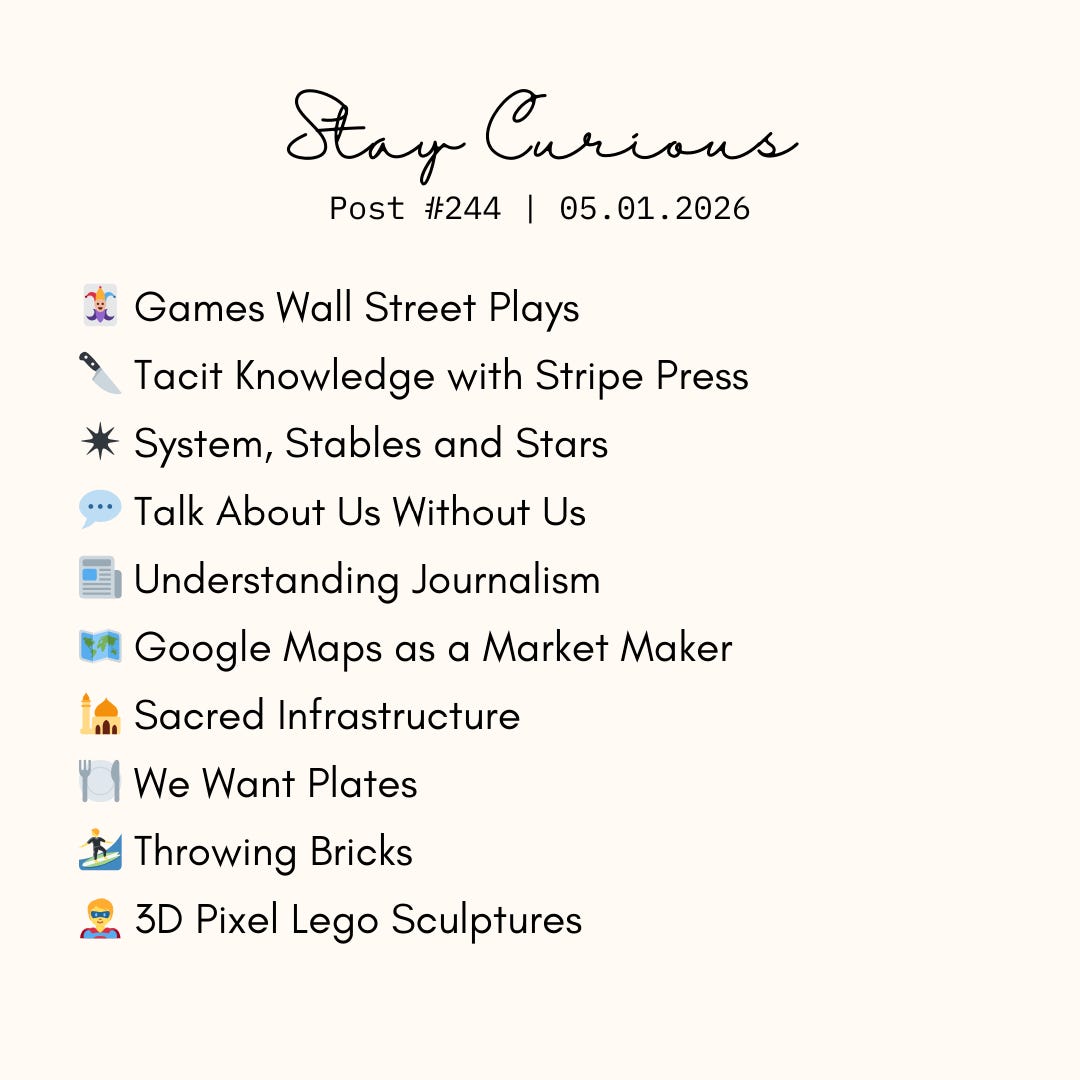 đ #244 Games WallStreet Plays, Tacit Knowledge, System, Stables & Stars, Talk About Us Without Us