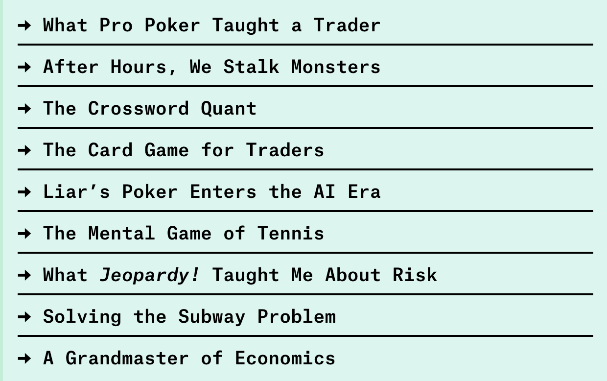 A recent feature from Bloomberg Markets Magazine brought this idea to life with real examples. In The Games Wall Street Plays (archived here), the piece shows how people in high stakes, high pressure roles use games to sharpen their skills. Poker, crosswords, Jeopardy, and sports. These are games you and I play for fun. For bankers and finance professionals, they become serious training tools.
