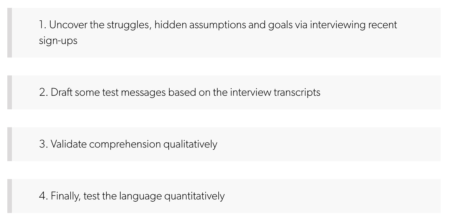 Working backwards, every successful startup creates something that people find truly useful. If you cannot even describe what your customers are trying to do in simple language, how long will it take you to invent a product they will love? With clear validated language, you can improve every aspect of the customer experience.
