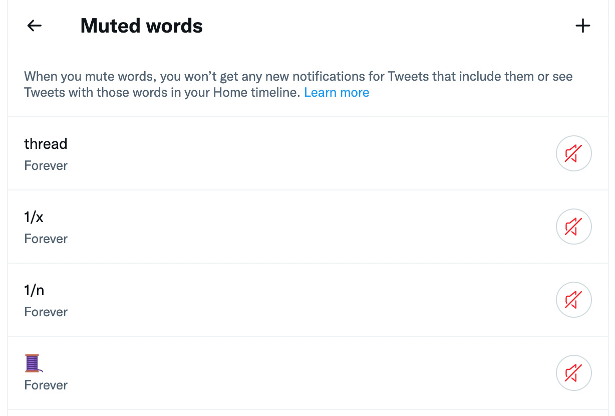 And add the following to “Add muted words” - 1/n, 1/x, thread, 🧵