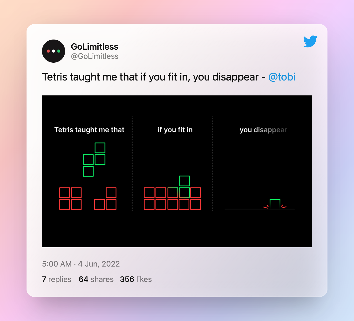 Before we sign off, here’s a simple life lesson from the game of Tetris (Tobi & his love for video games!).