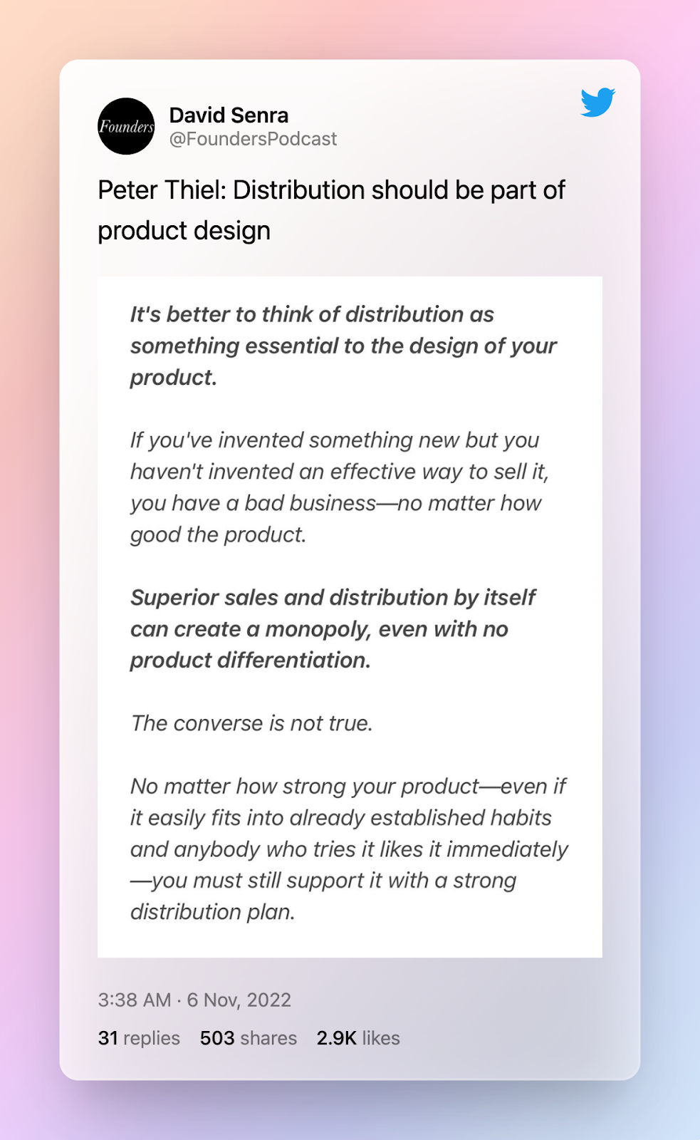 Before we sign off, here's a brilliant thought on product building.