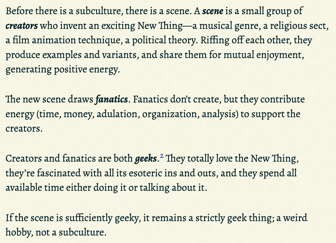 If the above snippet ignites any interest, then David Chapman’s essay “Geeks, MOPs, and sociopaths in subculture evolution” is going to be a fascinating read for you.