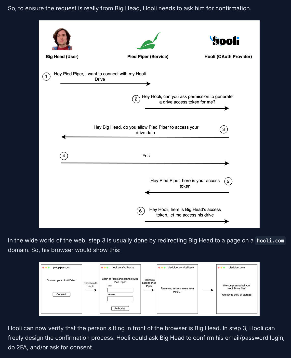 If youâre up for some nerdy fun, letâs learn OAuth from first principles. Folks at Stack Auth have done a fantastic job making a simple yet fairly effective explainer of a complex topic.Â