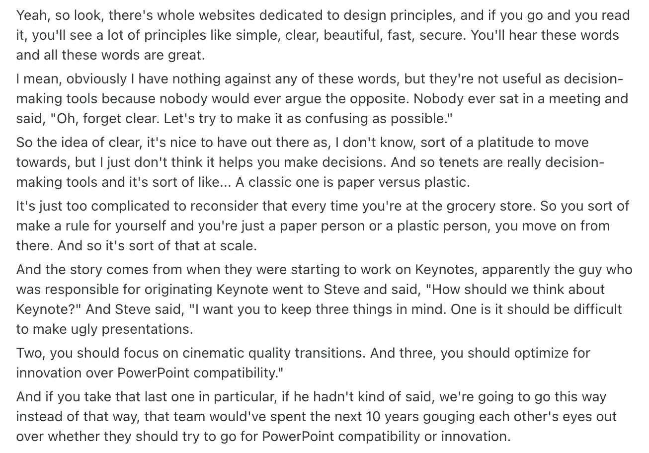 Especially the bit on design principles â and why his idea of âdesign tenetsâ works better. That story alone makes this episode worth the listen.