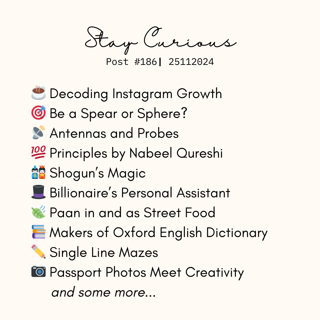 📚 Decoding Instagram Growth, Spear or Sphere, Antennas and Probes, Principles by Nabeel Qureshi, Shogun’s Magic