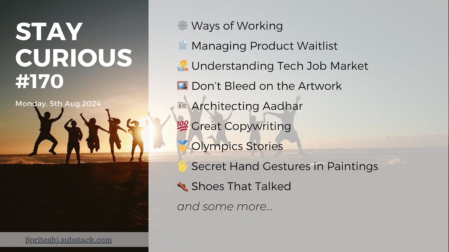 📚 Great copywriting, Ways of working, Product waitlists, Tech job market, Architecting Aadhar