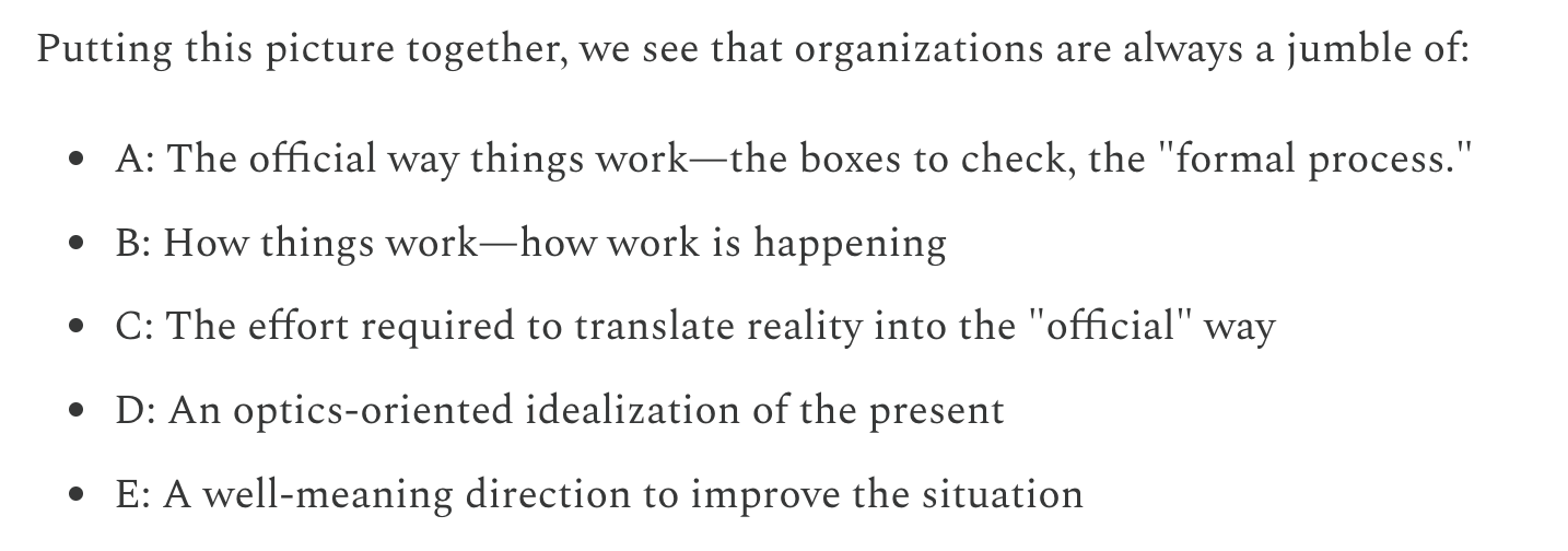 In any organization, things can work in three ways - Official, Real, and the Ideal. Here’s an easy explainer of what John Cutler means by these.