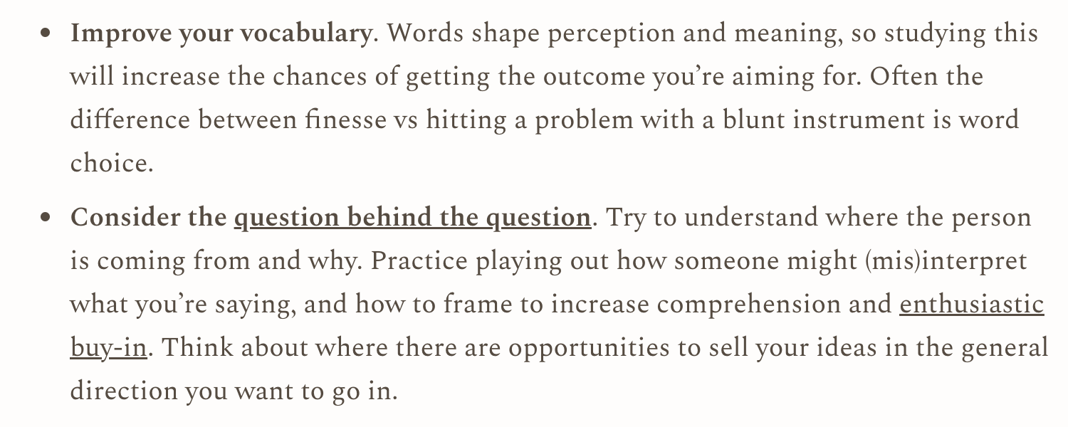I love this âimprove your vocabâ idea. We donât realize this, but a lot of our ideas and our confidence in those get hindered by our choice of bad words. It always pays to become a better communicator by choosing the right words.