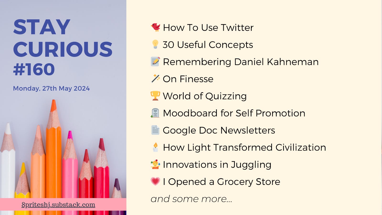 And by the way, do check out his newsletter. Every post has at least one or two ideas worth noting down. His range of topics is fascinating as well.