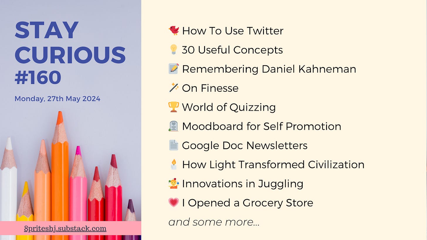 đ How to use Twitter, 30 Useful concepts, Google doc newsletters, Remembering Daniel Kahneman, Innovations in juggling