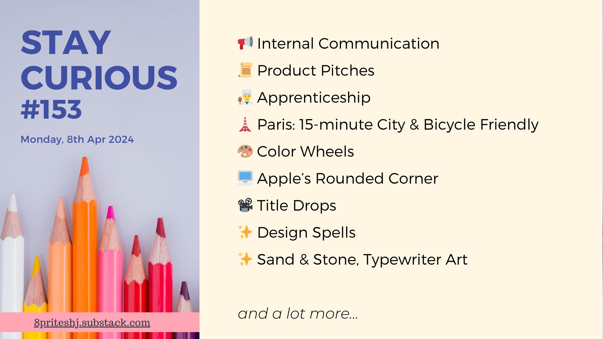 The week, however, went by discovering ideas that inspire me more to chase my curiosity. And I got some of those lined up for you in todayâs post. Hereâs a quick view of the lineup: