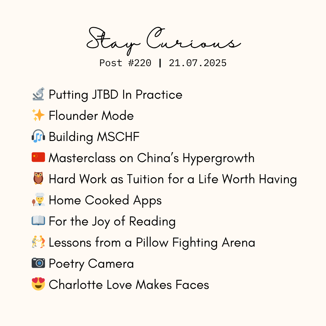 📚 JTBD in Practice, Flounder Mode, Building MSCHF, Masterclass on China’s Hypergrowth
