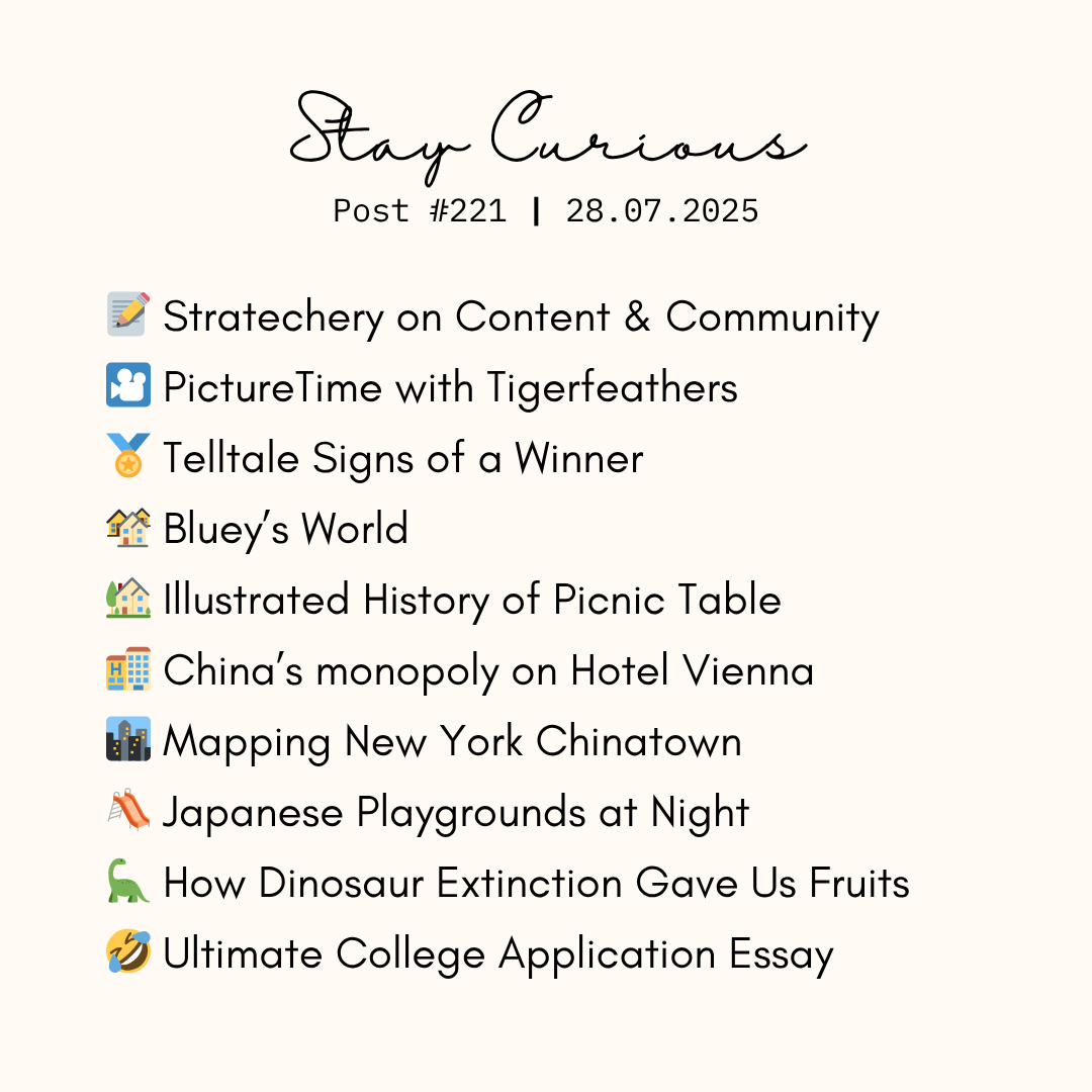 đ Stratechery on Content & Community, PictureTime, Blueyâs world, History of Picnic Tables