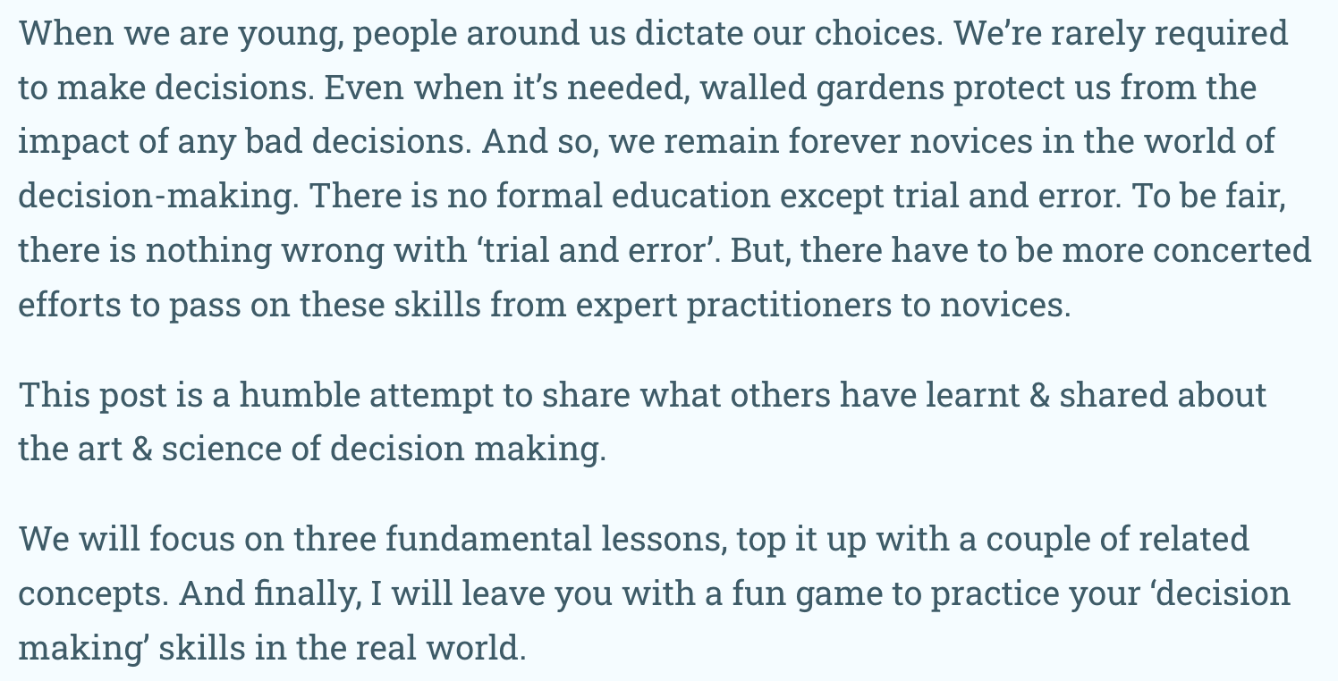 Last month, my friend Satyajit Rout invited me to do a guest post for his weekly newsletter - āCuriosity > Certaintyā.