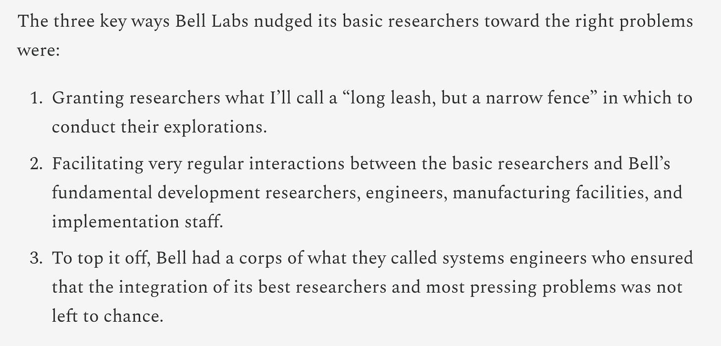 In this state of mind, āHow did places like Bell Labs know how to ask the right questions?ā felt like a godsend. Eric Gilliam does a fantastic job exploring what made Bell Labs one of the most successful research organizations in modern science and technology.