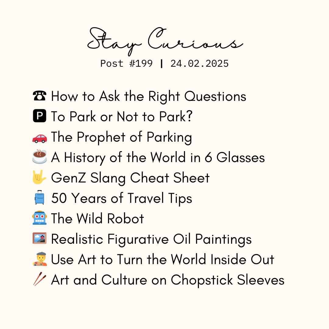 š To park or not to park? A history of the world in 6 glasses, GenZ slang cheat sheet, 50 Years of travel tips, How to ask the right questions