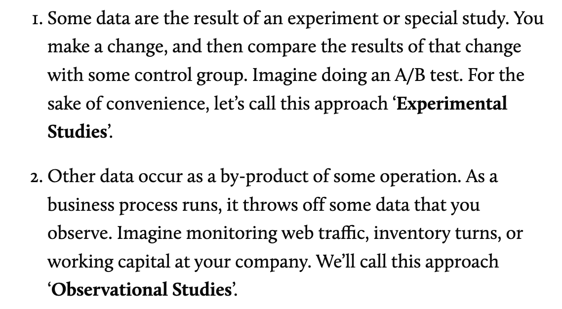 Cedric Chin talks of the following two types of data analysis.Â